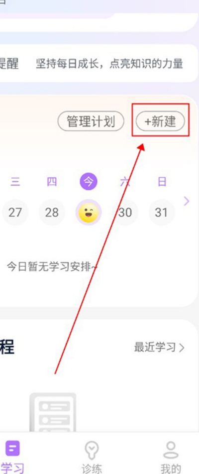 1、豆伴匠用户在完成课程购买后,可进入学习页面进行学习计划制定操作,在页面中选择并点击“新建计划”功能入口开始设置。