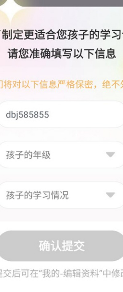 3、确认计划模式后,需要填写对应学习者的基础教育信息,以便系统更精准生成个性化学习方案。