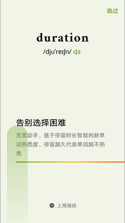 2、系统根据停留时长自动判断单词熟悉程度,停留时间越长则代表该词掌握度越低,用于优化复习安排。