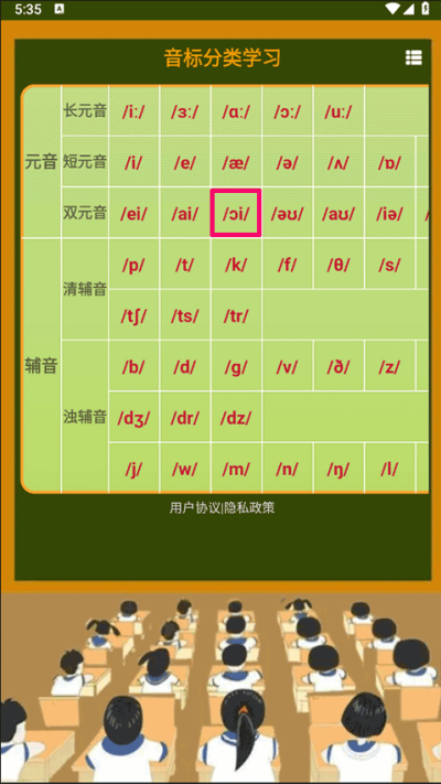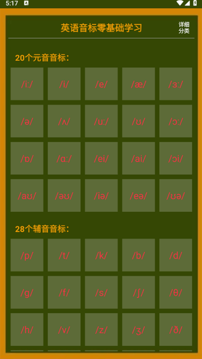 4、在分类界面中可查看元音与辅音的完整展示,逐步建立音标认知体系。