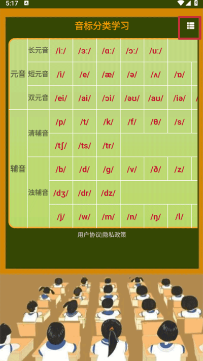 3、进入音标分类页面后点击红色按钮,可开启更深入的系统学习内容。