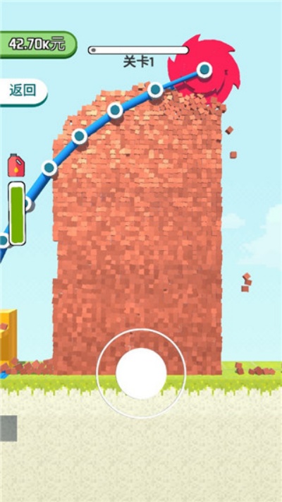 3、进入关卡后操控设备对墙体进行挖掘与破坏,逐步完成拆除目标。