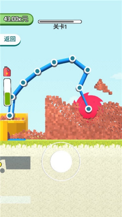 铲斗破碎机是一款以机械拆除与资源获取为核心的休闲解压游戏,通过操控铲斗设备对墙体与建筑进行破拆,逐步清理目标结构,并通过挖掘与撞击获取砖块资源转化为金币用于发展,再利用奖励强化设备能力,提升长度、力度与续航表现,在不同关卡中完成拆除任务解锁更多场景与挑战内容。整体玩法围绕机械操作与建筑破坏展开,关卡中提供多种墙体结构与目标要求,需要通过控制铲斗进行挖掘与击打,使建筑逐步瓦解并转化为资源,获得的金币可用于强化设备性能,使破拆效率持续提升,随着进程推进关卡结构更加多样,需要根据不同形态调整操作方式,整体体验以机械操作与持续破坏为核心。