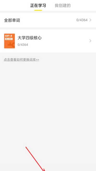 3、进入“我的词库”页面后点击底部“添加词库”选项,开始选择学习内容。