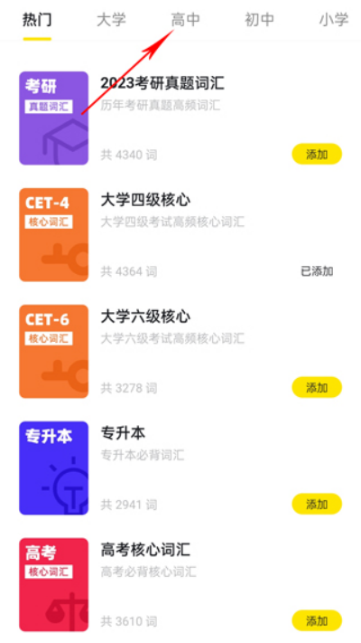 4、在弹出的选项中选择对应学习年级,即可完成词库切换并应用新的学习内容。