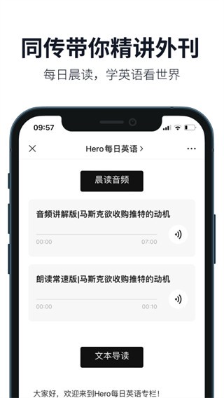 实现发音与内容原文同步显示,用户可跟随音频跟读练习,精准纠正发音,提升学习效率与口语能力。