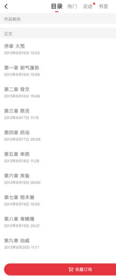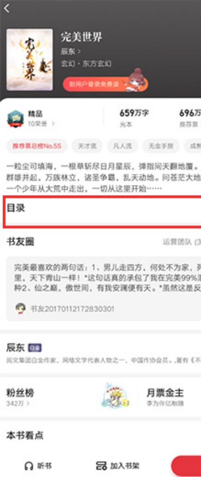 2、在书籍详情页面下方找到“目录”选项并点击进入章节列表界面,浏览完整章节结构内容。
