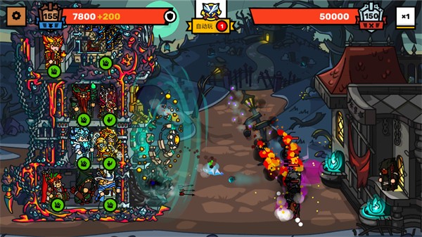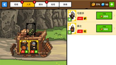 1、通过塔楼扩展兵种容量,可在塔中部署更多弓箭手与战士。随着关卡推进,资源收益逐步提升,用于强化整体战斗体系与防御能力。